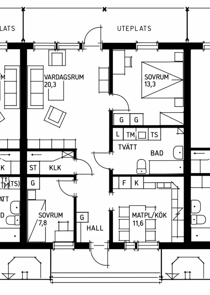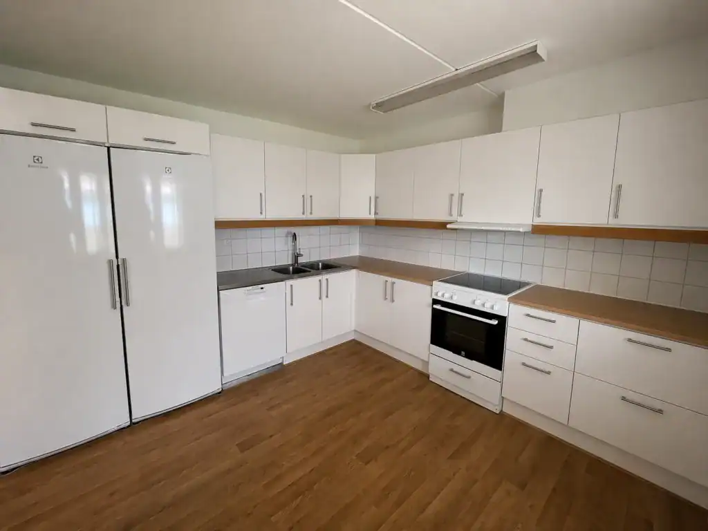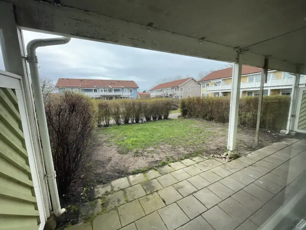 Lägenheten erbjuder en välplanerad planlösning med allrum, två sovrum och ett praktiskt kök. Från vardagsrummet når du den egna uteplatsen i markplan – perfekt för morgonkaffet, sommarkvällar eller en stund i solen.